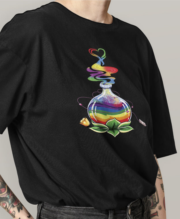 Celebrate love without boundaries! Our exclusive T-shirts feature an uncorked potion bottle artwork , symbolising freedom from societal constraints and the courage to love openly. This vibrant design honours the LGBTQ community’s journey toward living authentically and embracing their true selves. Step into your truth and wear it proudly—because love, like this potion, was never meant to be bottled up.