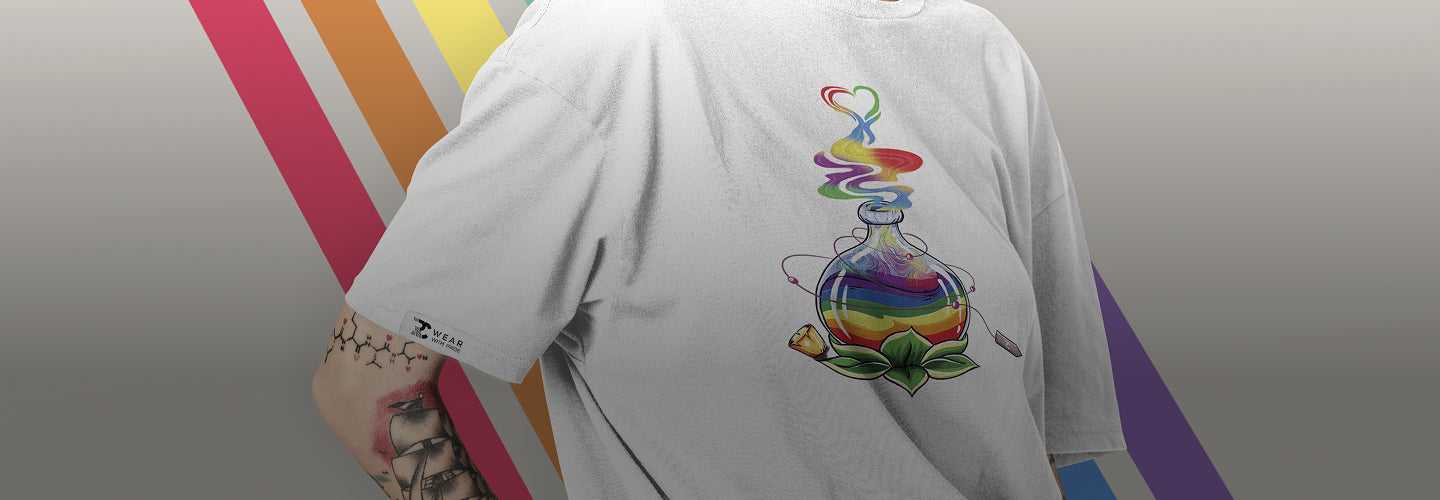 Celebrate love without boundaries! Our exclusive T-shirts feature an uncorked potion bottle artwork , symbolising freedom from societal constraints and the courage to love openly. This vibrant design honours the LGBTQ community’s journey toward living authentically and embracing their true selves. Step into your truth and wear it proudly—because love, like this potion, was never meant to be bottled up.